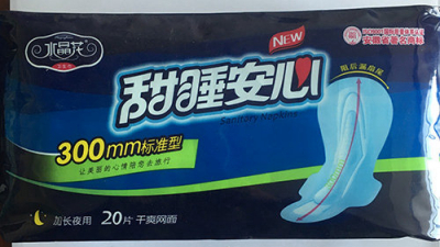 水晶花牌甜睡安心系列卫生巾加长夜用300mm标准型20片干爽网面装
